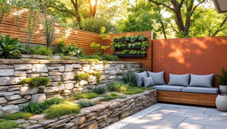 For seating, arrange repurposed cinder blocks topped with 2×10 lumber benches. Paint with exterior primer and paint for weather protection. Incorporating entertaining backyard designs can make the space dual-purpose for both kid performances and adult gatherings.